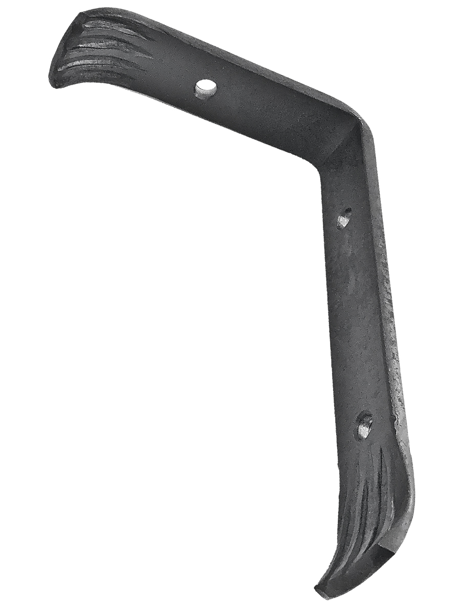 Käsityönä tehty taottu hyllynkannatin.