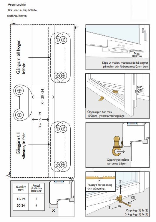 Erikoismallisten ikkunoiden säädettävä aukipitohela antaa ilmettä myös tavallisille ulos aukeaville ikkunoille.