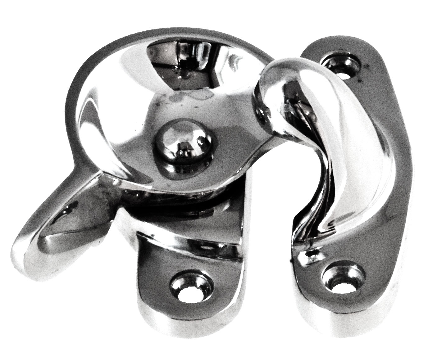 Niklattu ikkunansuljin, ns. korvasalpa.
