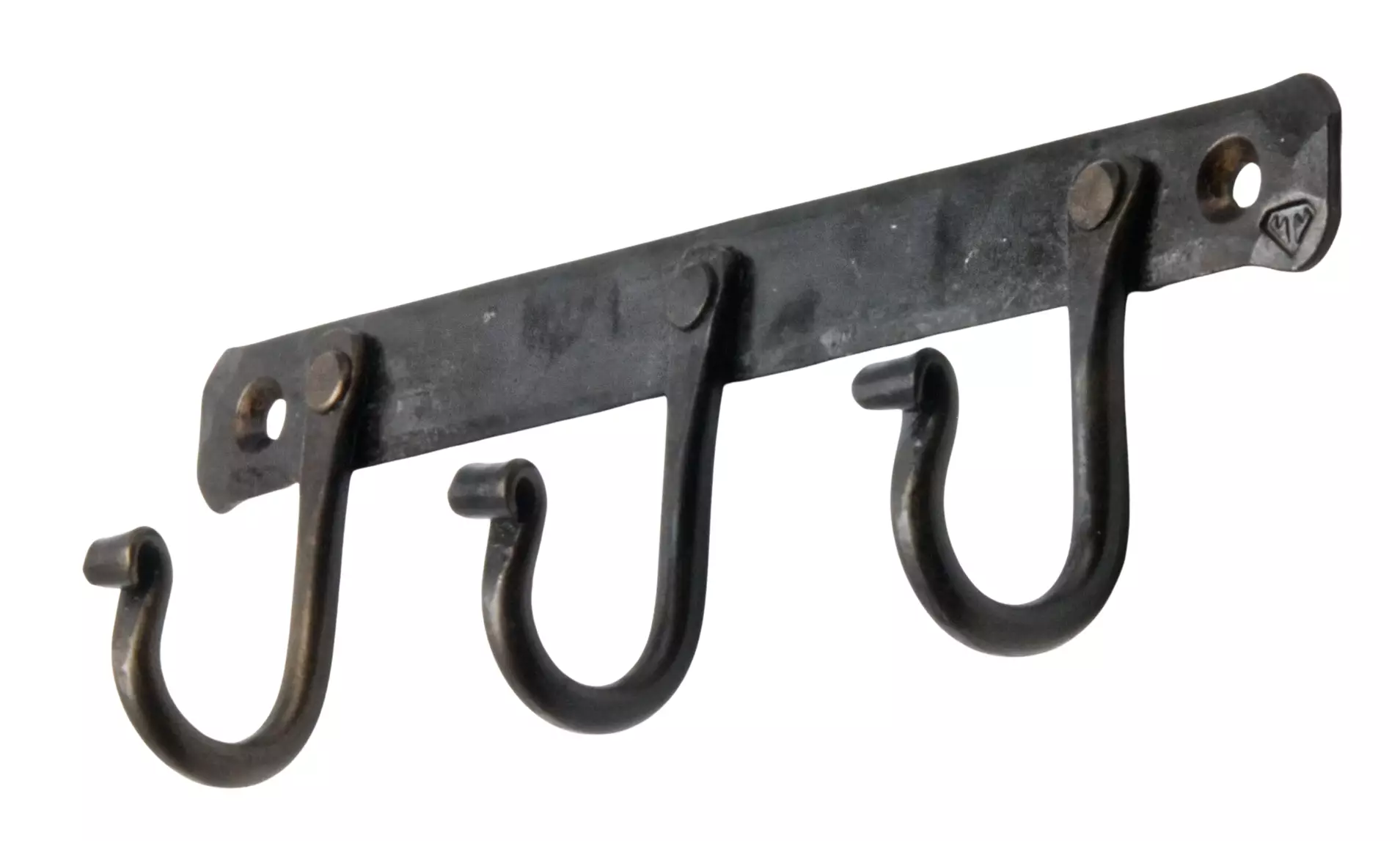 Kolmen koukun taottu naulakko on vanhan mallin mukaan valmistettu.