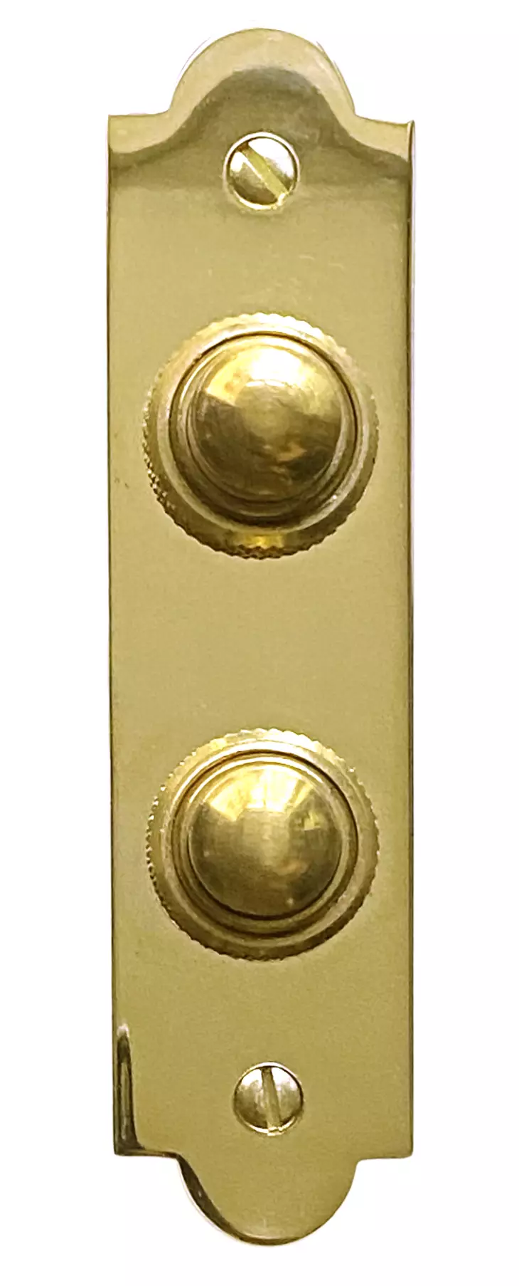 Messinkinen ovikello kahdelle asunnolle, painettava.