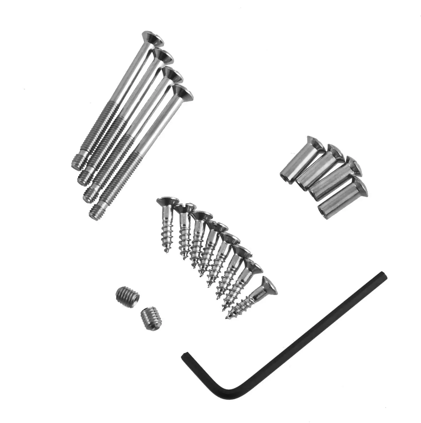 Painikkeen asennussarja sisältää ruuvit oven läpi asennukseen (yht. 4 kpl) sekä pinta-asennusruuvit (8 kpl) ja painikkeen kiristysruuvit (2 kpl). Pakkauksessa on myös kuusiokoloavain kiristysruuveille. Kaikki ruuvit ovat talttapäisiä.