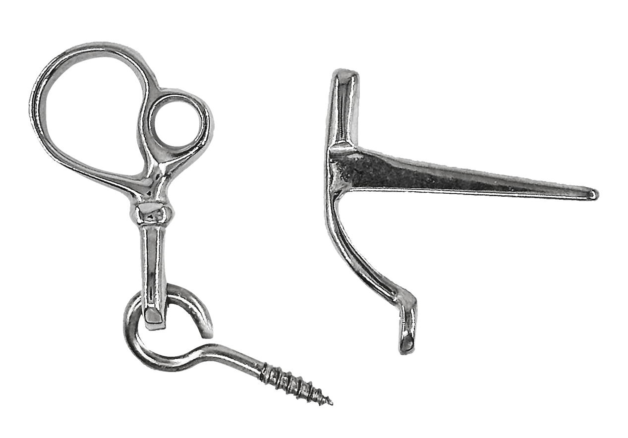 Haka ja pyrstökoukku messinkiä, niklattu.