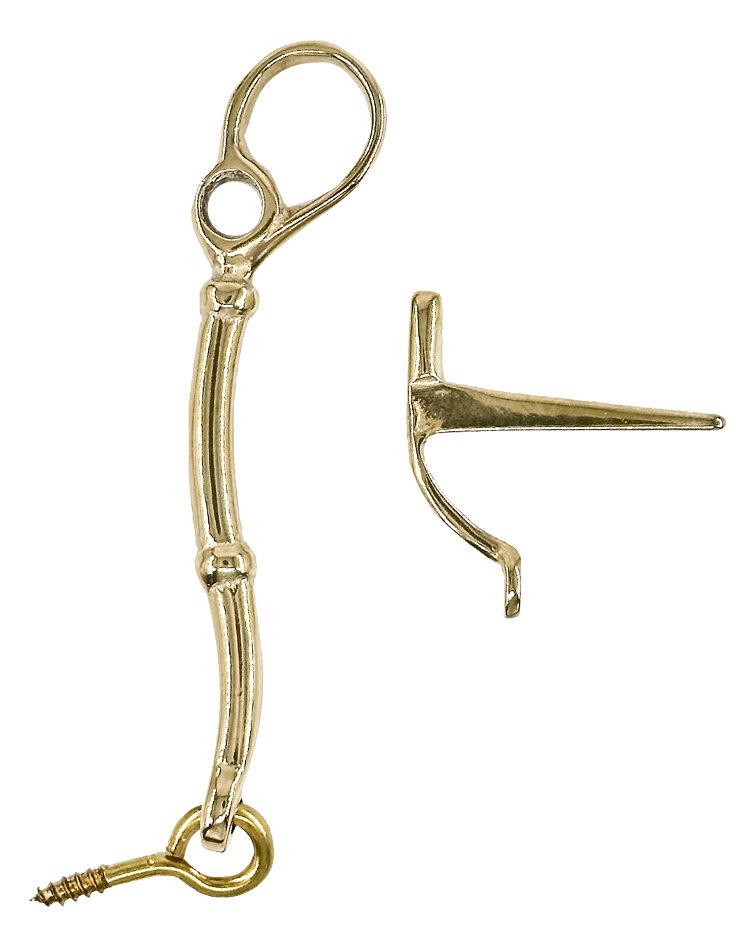 Haka ja pyrstökoukku valettua messinkiä, lakkaamaton.
