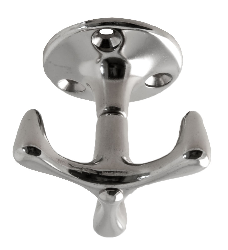 Naulakon alapintaan kiinnitettävä pyörivä vaatekoukku, niklattu.