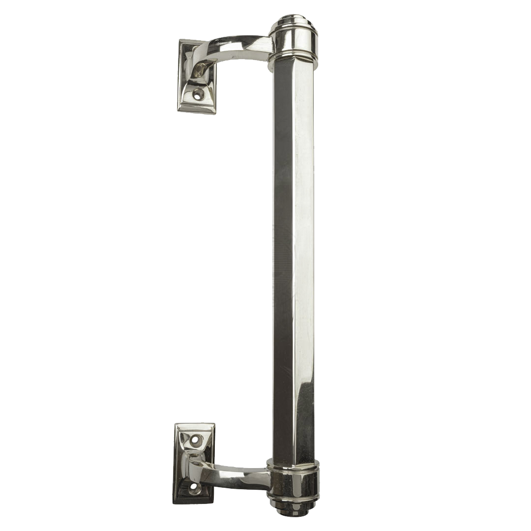 Näyttävästä ulko-oven vetimestä on sekä niklattu että messinkinen versio.