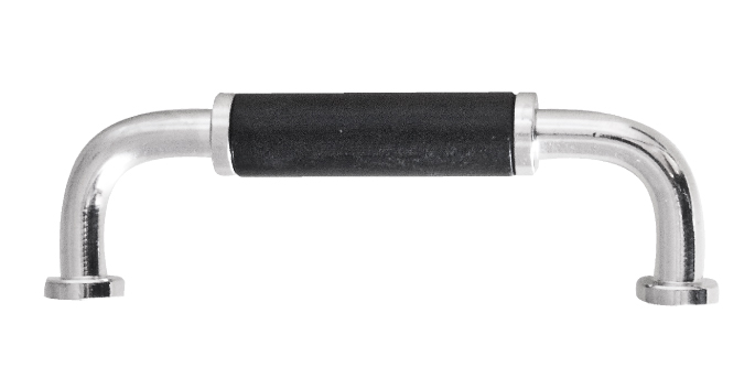 Messinki, niklattu. Käsiote on mustaksi maalattua puuta.