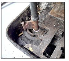 Kamarin lukkoon tarvitaan yleensä melko suuri avain. Tässä mallissa on vain yksi hammas, jonka ainoa tehtävä on ensin mahtua lukitusteljen ohi ja sitten siirtää sitä.