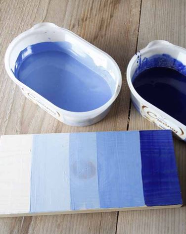 Yleensä tehdään ensin valkoinen maali, jota sävytetään. Jos haluat tumman värin,