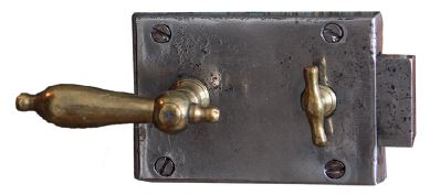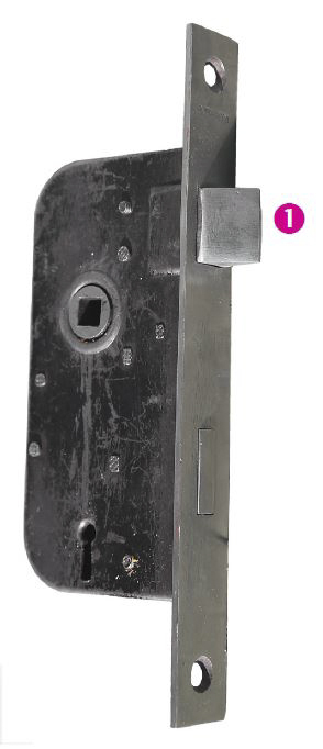 1900-luvun lukon kätisyyden voi usein vaihtaa. Lukko avataan ja painiketelki (1) käännetään toisin päin. Kätisyyden vaihdettavuus selviää lukon avaamisella.