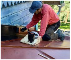 Maalauskertojen välillä maalipintaan voi tarttua hyöteisiä ja tuulen mukana siihen lentää roskia. Varaudu pyyhkimään roskat katolta kuivalla rätillä aina ennen seuraavaa maalauskertaa.