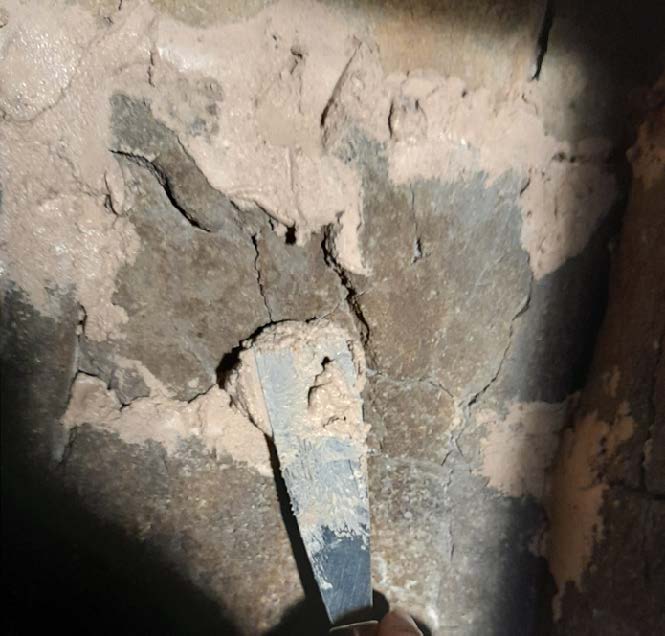 1. Poista seinistä kaikki irtonaiset laastimöykyt ja tiilenpalat. Kaiva helposti irtoava laasti saumoista ruuvimeisselillä. Tasaiset pinnat harjataan puhtaiksi teräsharjalla.