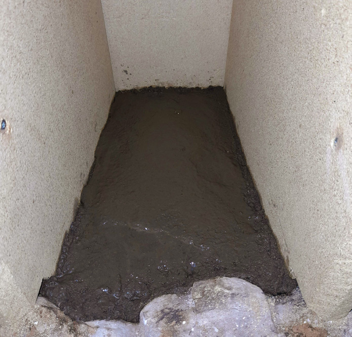 7. Tee uunin pohjalle noin 3 cm paksu valu saviuunilaastilla tai tulenkestävällä massalla. Valu pitää levyt paikoillaan.