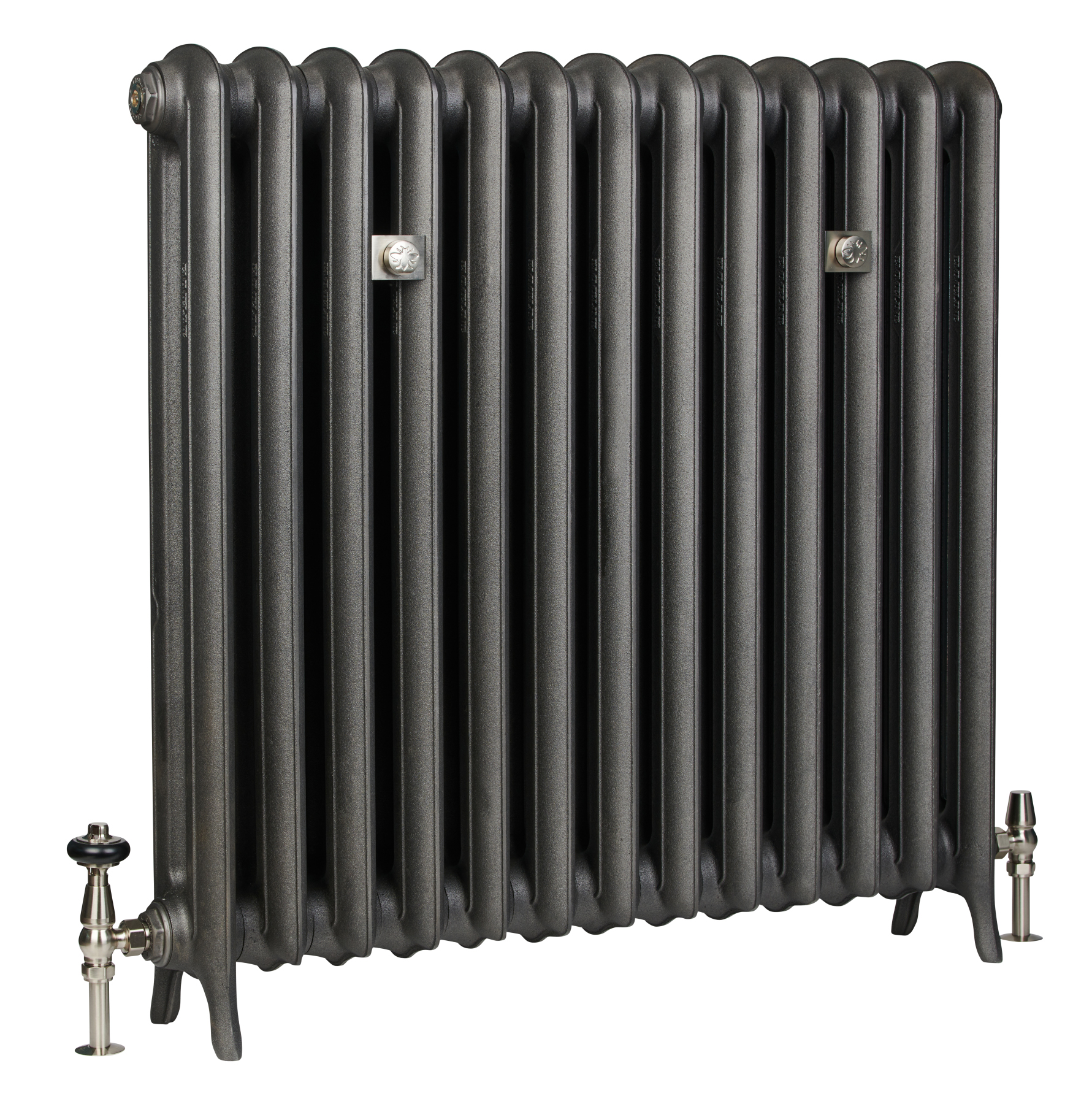 Patteri on tilattavissa myös ilman jalkoja. jolloin patterin alle tilataan seinäkannakkeet. Molemmissa tapauksissa toimitamme patterin mukana sen yläreunaan asennettavan tuen (pidemmissä malleissa useamman), jolla varmistetaan se, ettei patteri pääse kaatumaan. Ilmausventtiilit sisältyvät patteritoimitukseen. Patteri toimitetaan ilman venttiilejä.