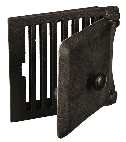 Valurautaisessa ilmanvaihtoventtiilissä on saranoitu luukku. Luukun voi pitää auki kesällä ja sulkea talveksi. Säleikkö estää isompien eläinten liikkumisen alapohjassa.