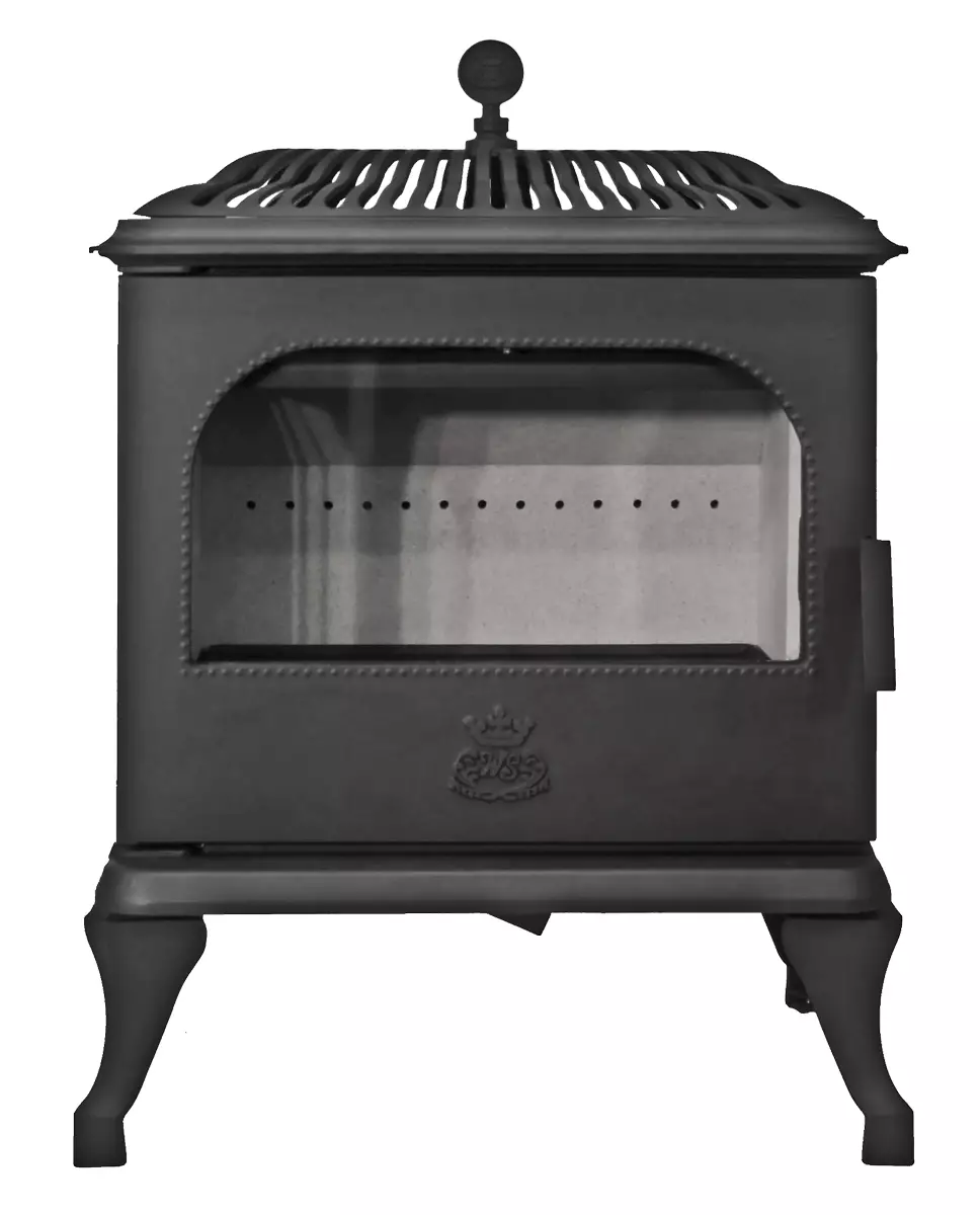 Victoria -valurautakamina on eleettömän kaunis tulisija, joka viestii vanhaa aikaa. Kaminan päällä on myös keittolevy.