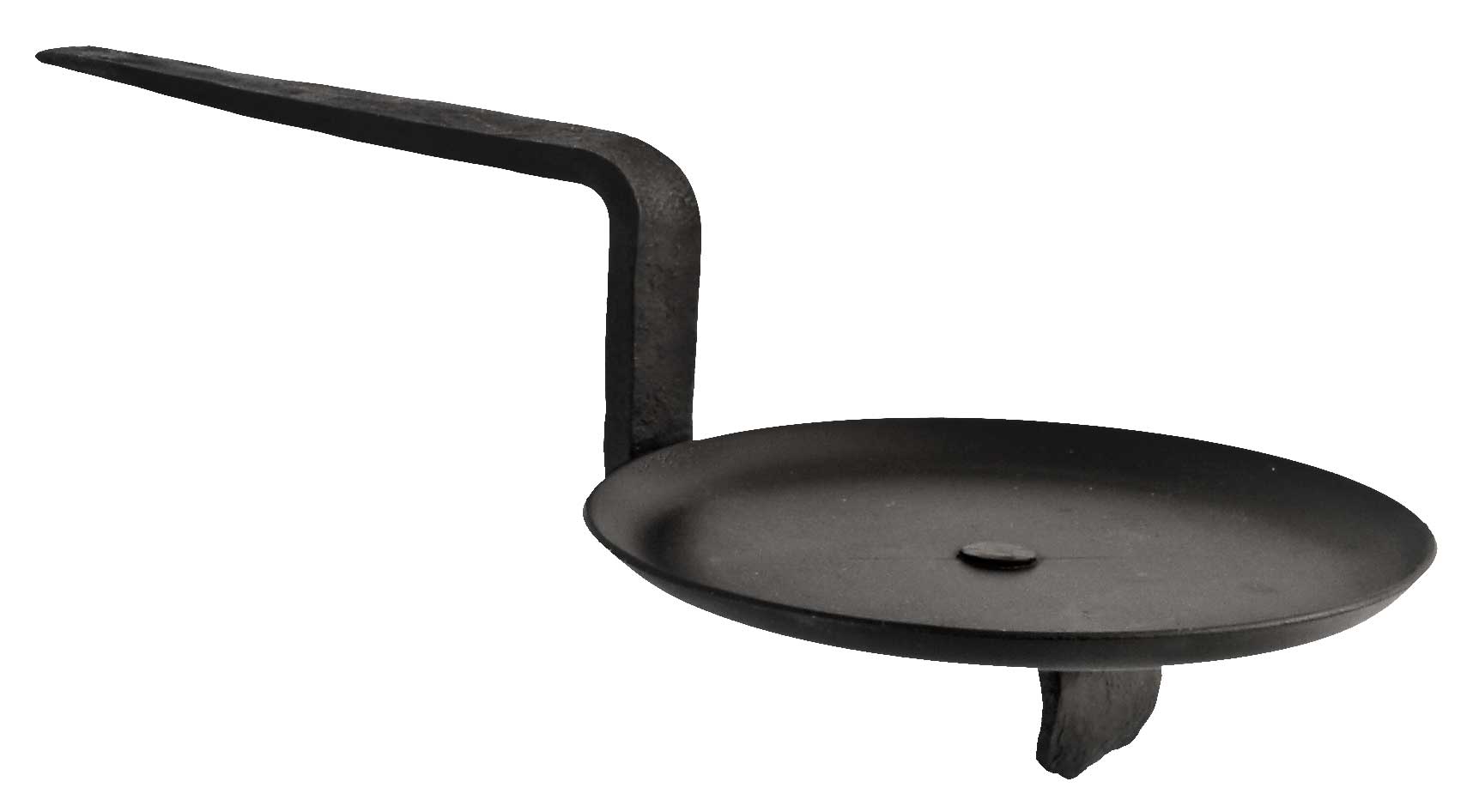 Kannake takorautaa, kynttilänalusta peltiä. Molemmat käsitelty mustaksi.