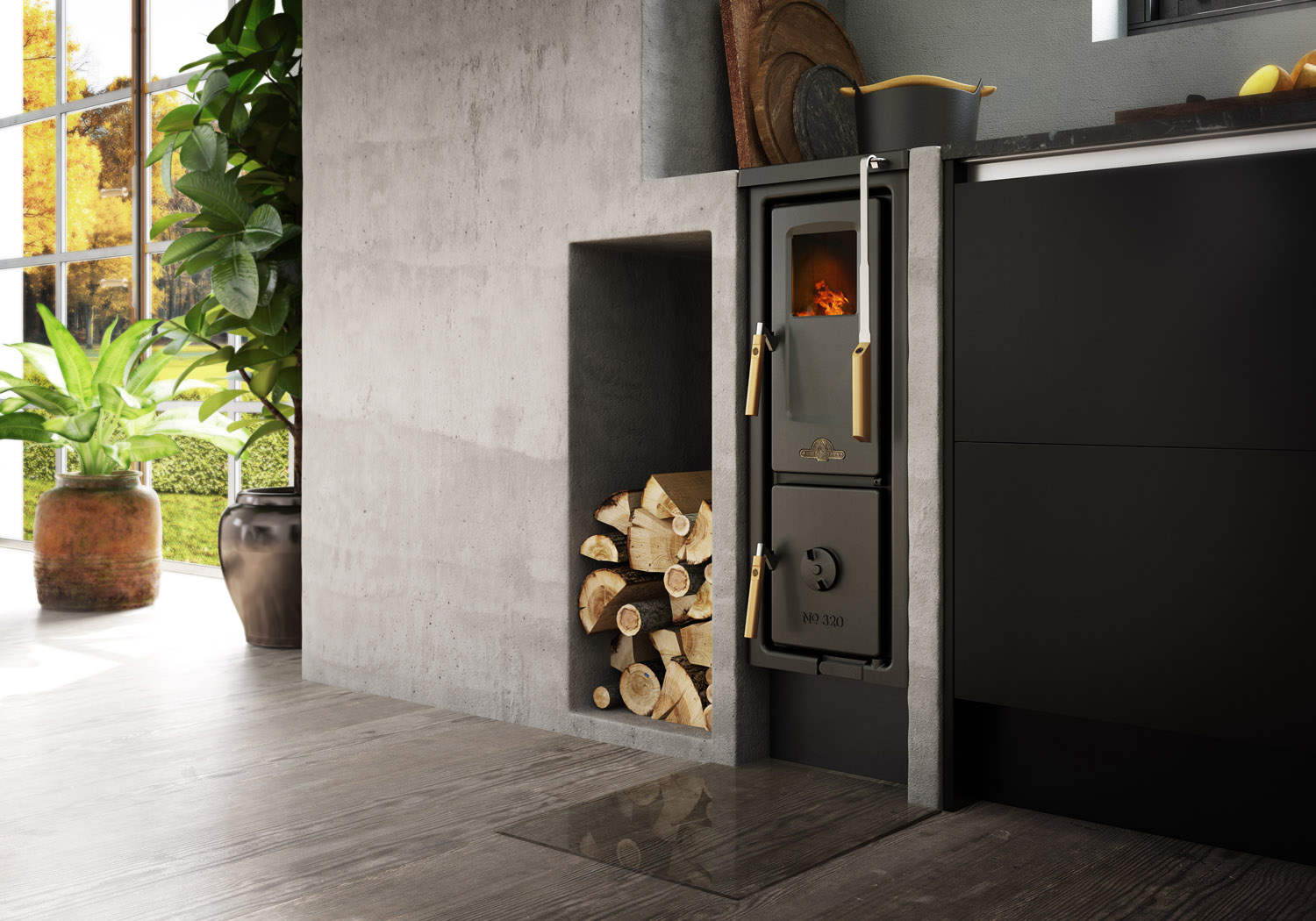 Valurautainen kapea puuhella on varustettu yhdellä keittolevyllä. Se sopii hyvin sekä vanhaan että uuteen keittiöön.