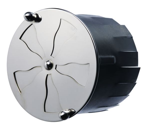 Mitat Venttiilin läpiviennin halkaisija on noin 10 cm, näkyviin jäävän osan peittomitan halkaisija 11 cm ja kauluksen syvyys 8 cm (ks. mittakuva). Kehyksen halkaisija on 10,5 cm.