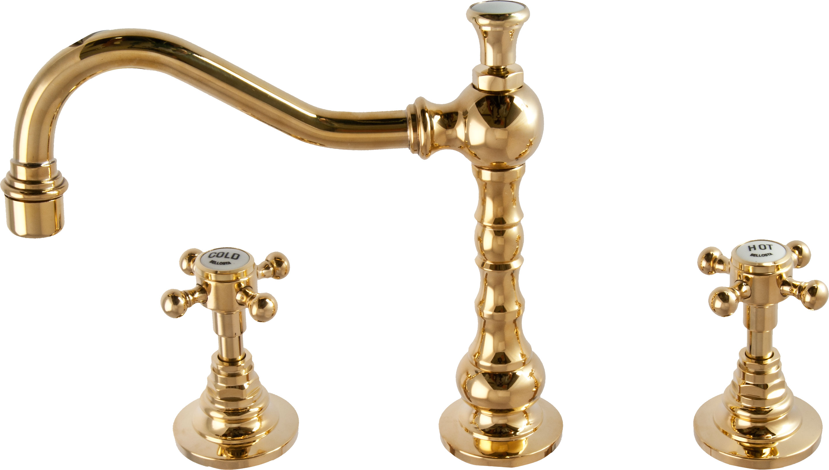 Kolmipisteisen kylpyhuoneen altaan hana. Tanko on kääntyvä.