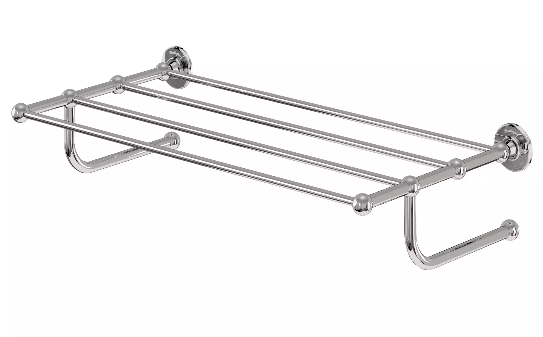 Kromattu hylly kylpyhuoneessa kestää kosteutta. Ilmava ritilähylly on kätevä mm. pyyhkeiden säilytykseen. Pienessä tilassa seinätilan voi ottaa käyttöön katonrajassakin. Soveltuu myös kuivaustelineeksi.