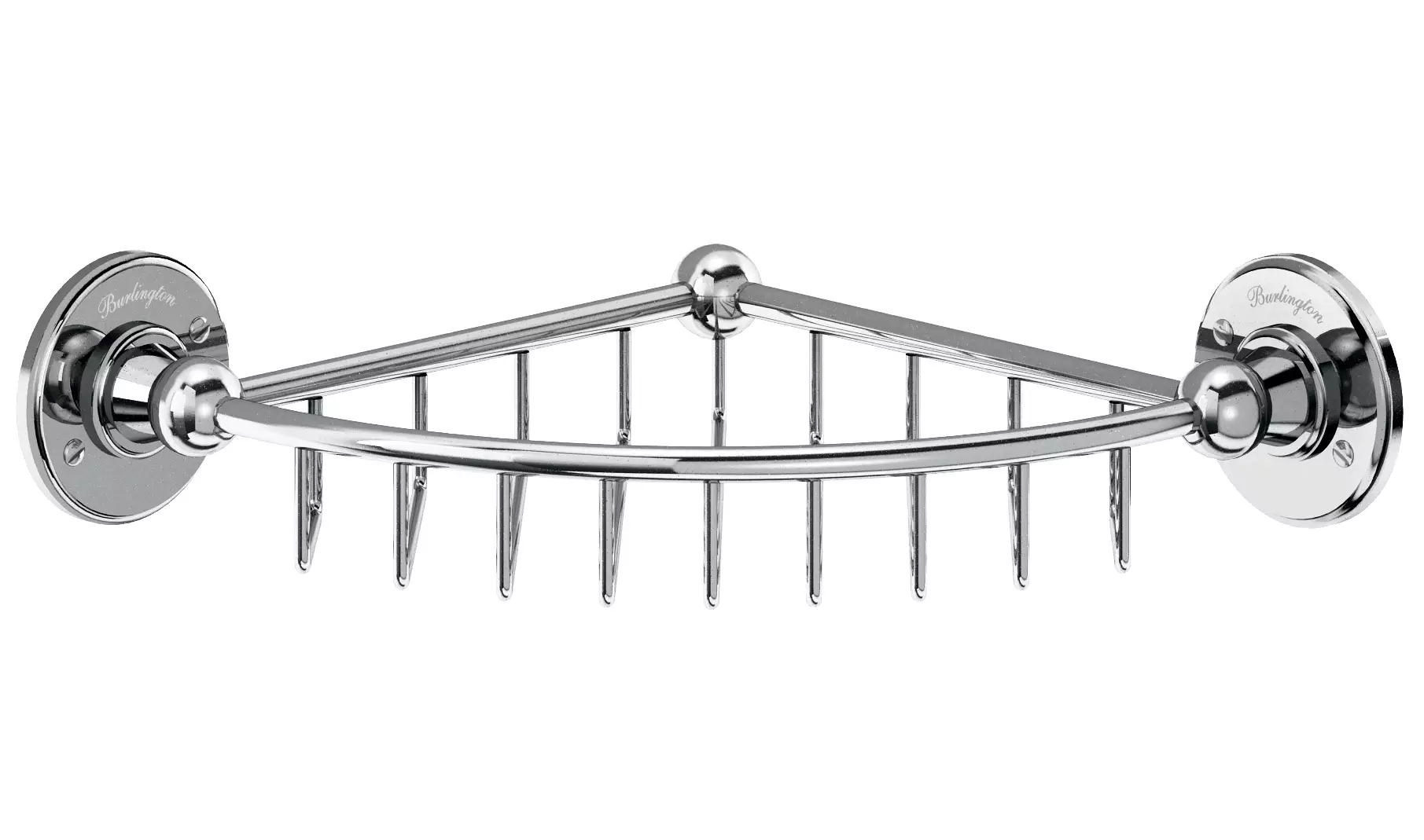 Burlingtonin kulmaan kiinnitettävä suihkuteline mahtuu pienempäänkin tilaan.