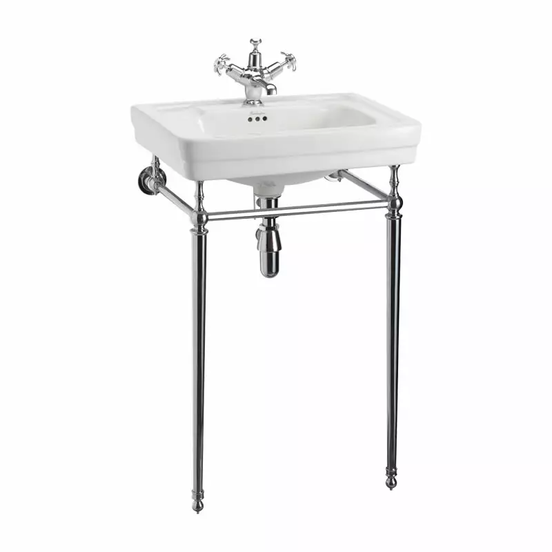 Contemporary -allas on täysin ajaton ja eleetön. Kromatun jalustan tanko toimii kätevänä pyyhetelineenä.