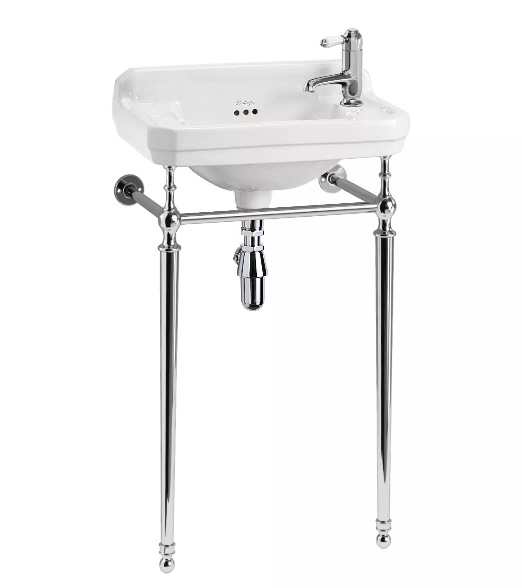 Tuote Edwardian-sarjan pienin allas on 51 cm leveä. Kulmiin sijoitetut hanat säästävät tilaa syvyyssuunnassa. Kromattujen jalkojen ansiosta pieni allas on koostaan huolimatta näyttävä. Hananreikävaihtoehtoja on 1 tai 2. Yhden hananreiän mallissa reikä on oikealla.