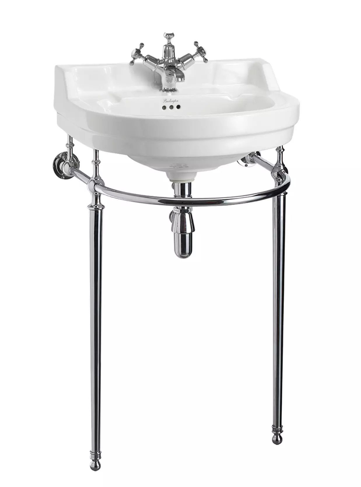 Pyöreän Edwardian -altaan kromattu jalusta antaa altaalle näyttävyyttä.