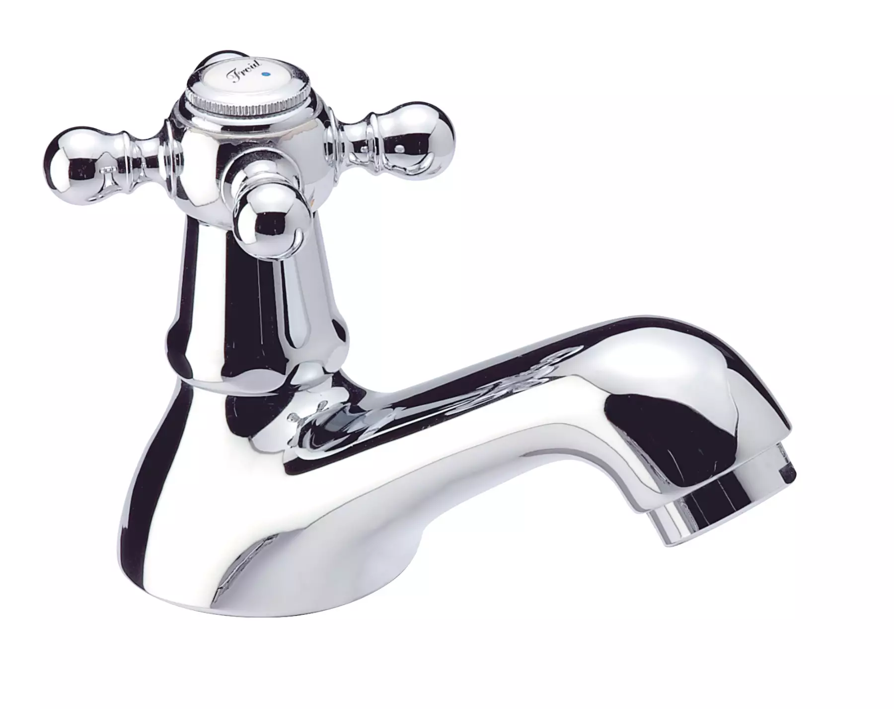 Vanhaan kylpyhuoneeseen hyvin sopivassa hanassa on säädin joko kylmälle tai kuumalle vedelle.