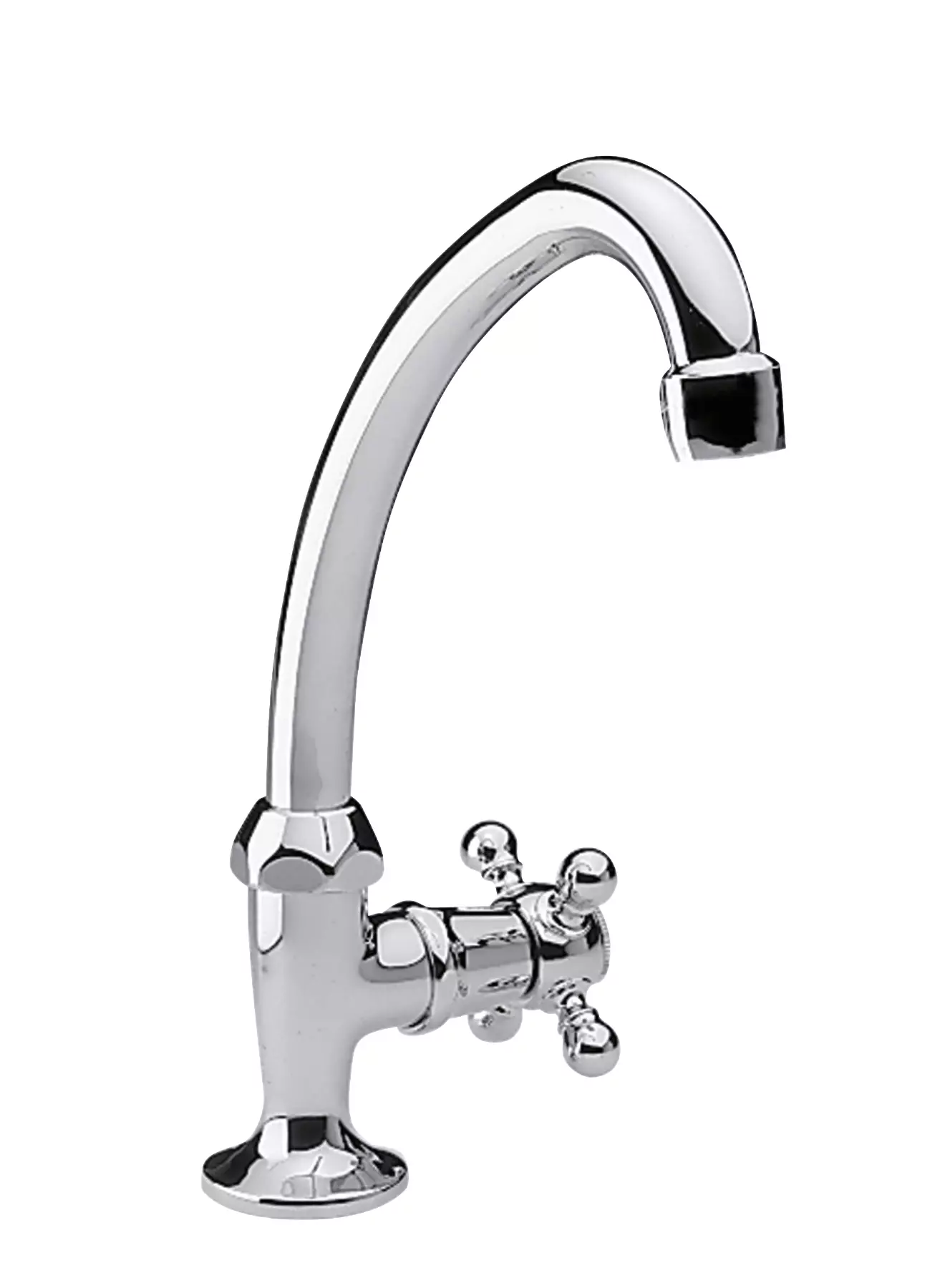Vanhaan kylpyhuoneeseen hyvin sopivassa hanassa ont säädin joko kylmälle tai kuumalle vedelle.