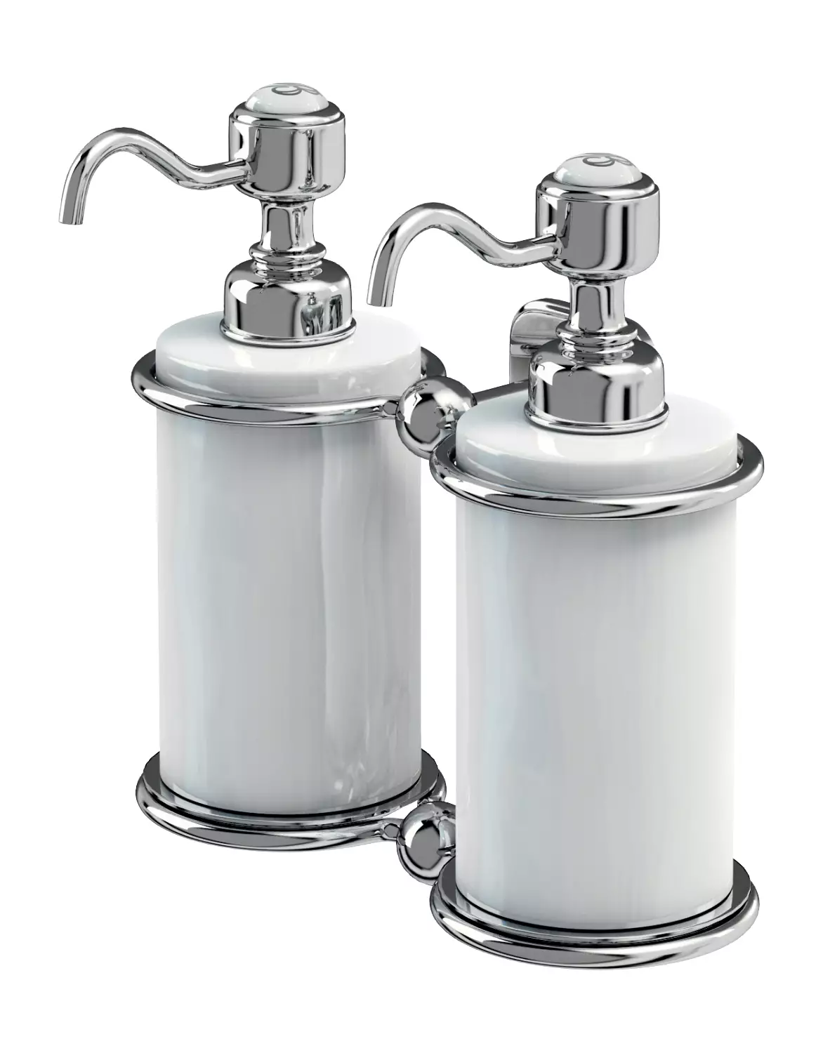 Nestesaippua on helppo annostella seinätelineessä tukevasti istuvasta saippuapullosta. Kiinteä teline säästää tilaa lavuaarin reunalta. Toinen saippua-astia soveltuu myös käsivoiteelle.