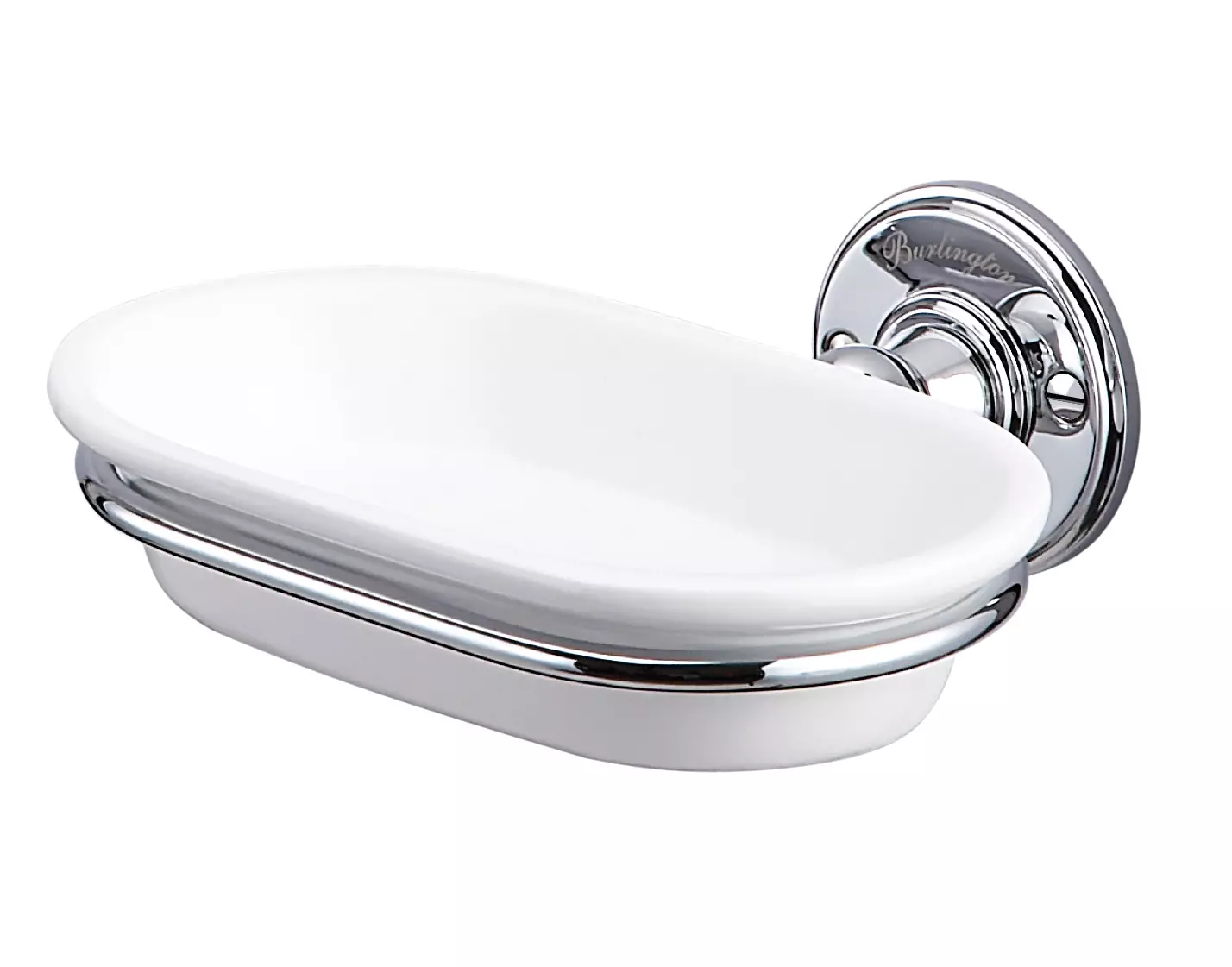 Messinki, kromattu. Saippuakulho posliinia, valkoinen.