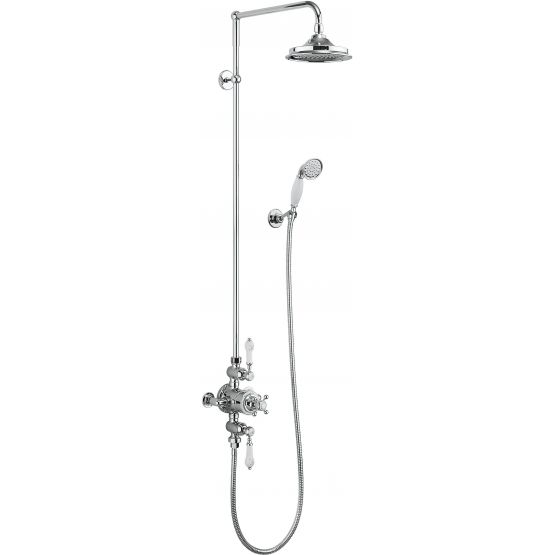 Kiinteässä yläsuihkussa on mukana myös käsisuihku. Suihku on varustettu termostaatilla.