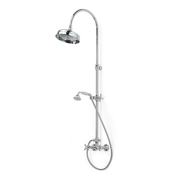 Seinään asennettavassa suihkuhanassa on sekä kiinteä yläsuihku että käsisuihku. Veden virtaussuunta vaihdetaan suihkutangon sivussa olevasta nupista.