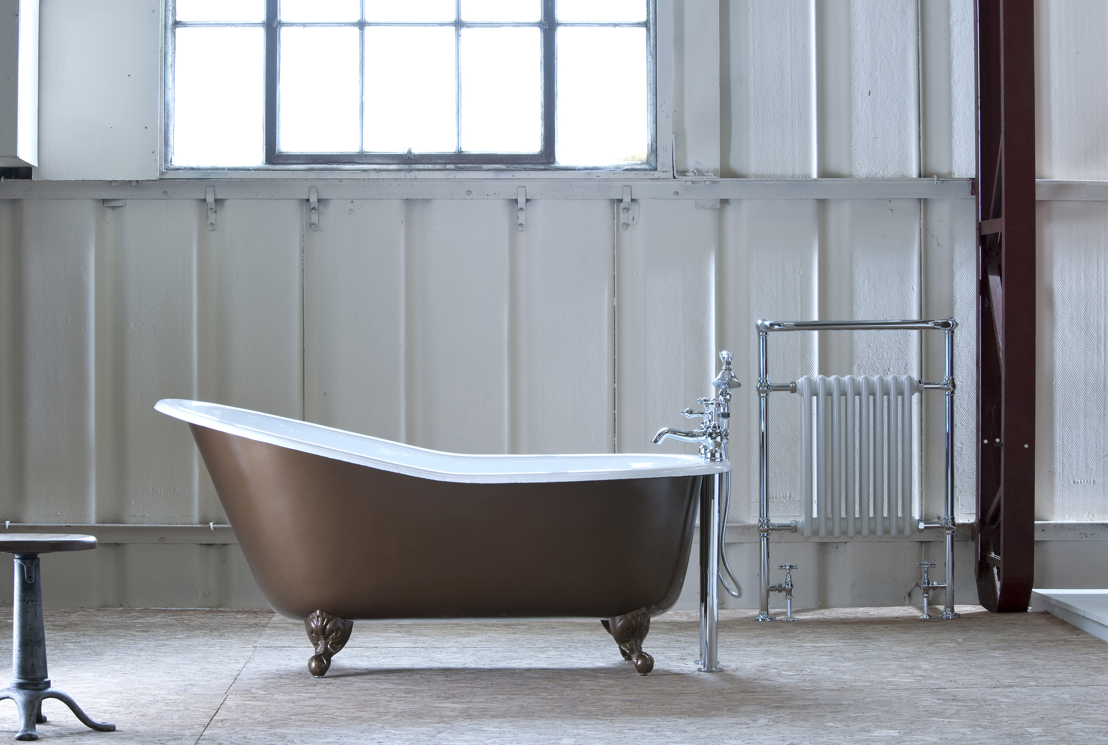 Materiaali Valurauta, emaloitu sisäpuolelta valkoiseksi. Ulkopinta on vakiona pohjamaalattu valkoiseksi. Ammeen pinnan päälle voi öljymaalilla maalata oman sävyn tai tilata erikoissävyn valmiiksi maalattuna tehtaalta (sävyt valittavissa RAL - värikartasta). Ammeen jalat ovat vakiomallissa kromattua valurautaa. Huom! Kuvan hana ei sisälly hintaan.