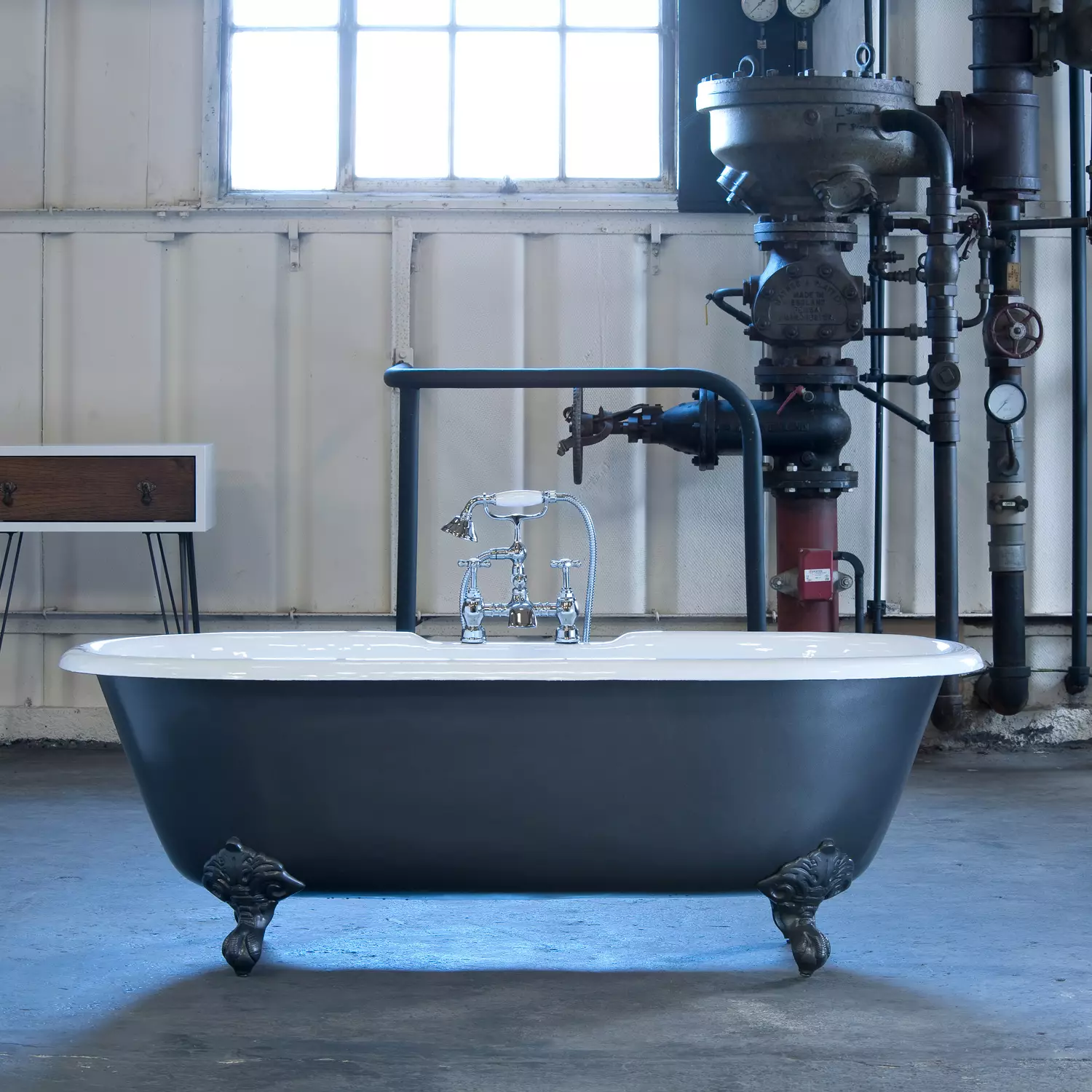 Materiaali Amme ja jalat valurautaa. Amme on emaloitu sisäpuolelta valkoiseksi ja jalat kromattu.