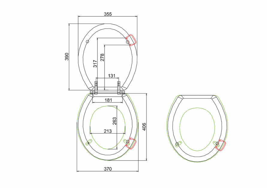 Kaikissa Wc-istuinten kansissa saranat on kromattu.