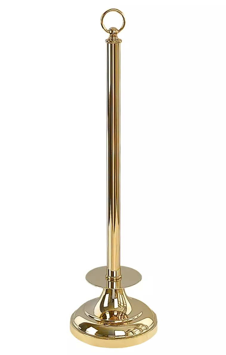 Lattialla seisova wc-paperirullateline on lakkaamatonta messinkiä ja patinoituu ajan myötä kauniisti.