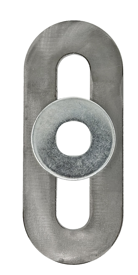 Reiän leveys on 23 mm (sopii 22 mm terästangolle) ja pituus noin 17 cm, leveys 59 mm ja paksuus 5 mm. Pyöreä aluslevy M20.