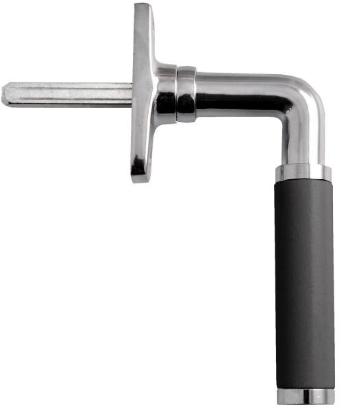 Messinki, kromattu. Kädensija mustaksi maalattua puuta.