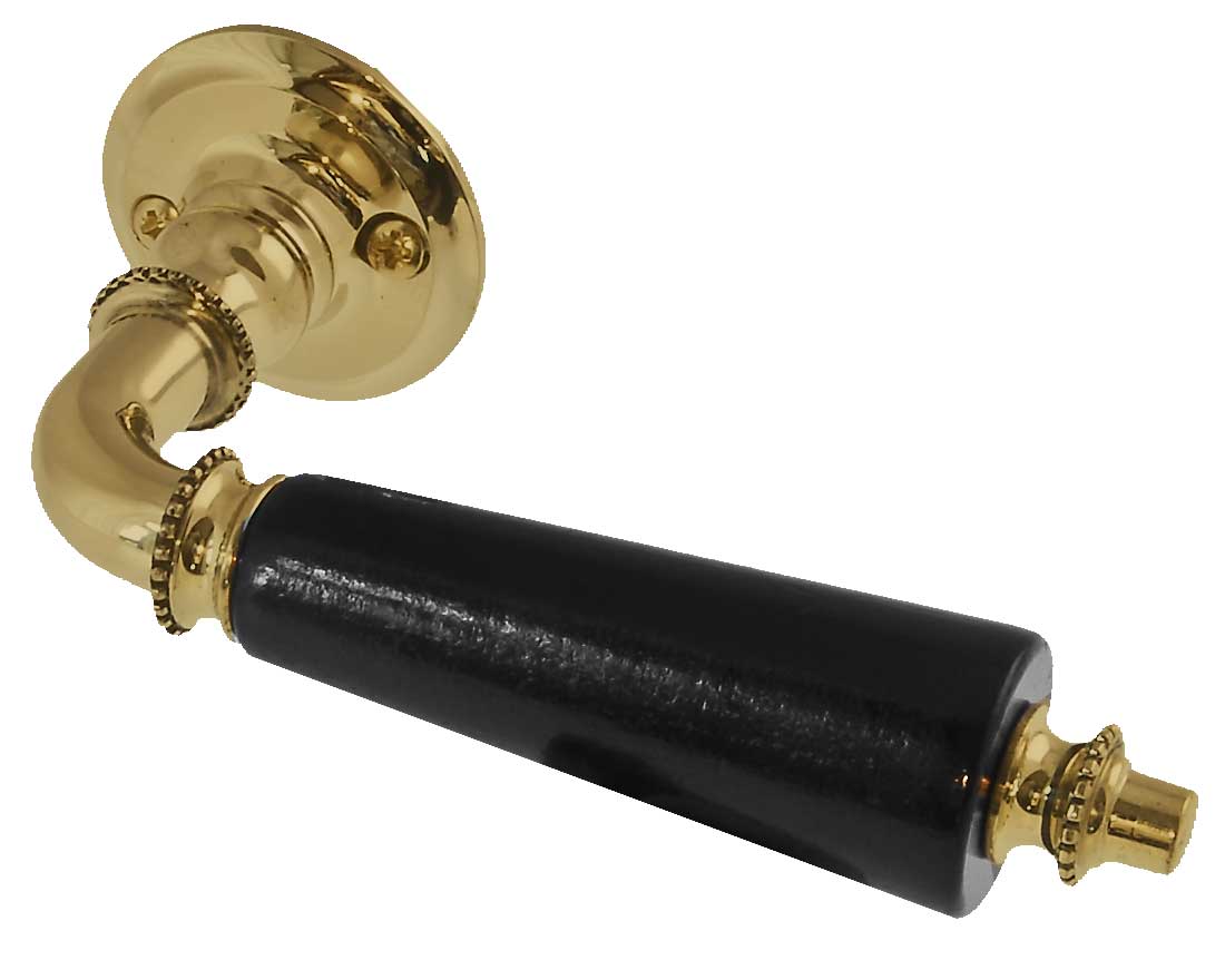Messinki, lakkaamaton. Kädensija on mustaksi maalattua puuta.