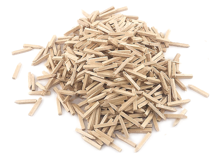 Naulan pituus 1,5 cm, paksuus 2 mm. Pussissa on noin 500 puunaulaa.