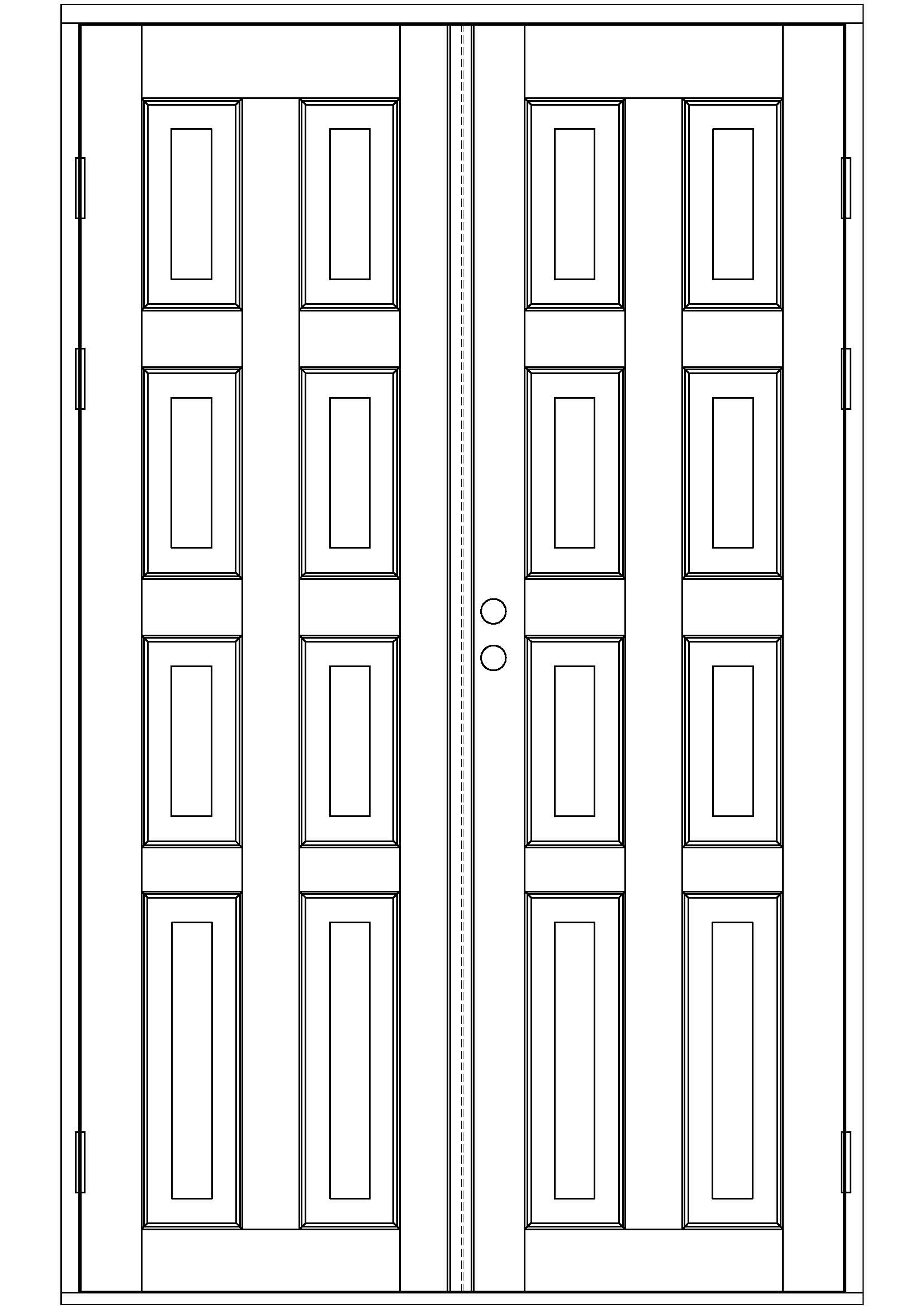 Kahdeksanpeiliset pariovet ovat puuta ja rakenteeltaan vanhaa mallia mukailevat. Vain lisäeristys ovilehtien sisälläon myönnytys nykyajan rakennusmääräyksille ja mukavuusvaatimuksille. Ovet toimitetaan valmiina asennettavaksi ja käytettäväksi.
