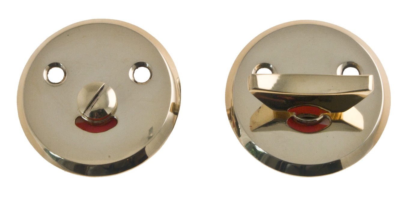 Pyöreä lukkokilpi messinkiselle WC:n painikkeelle.