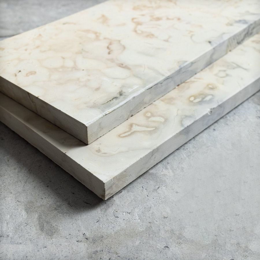 Dolomiitti, pinta hiottu. Sävymaailma on kellertävän ja sinertävän kuvioinen, mutta sävyt ja kuviot vaihtelevat. Laatta on voimakaskuvioinen. Laattoja ei lajitella värin tai kuvion mukaan, vaan tavoitteena on eläväinen lattiapinta.