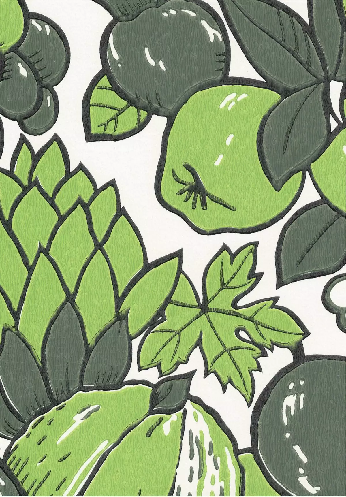 70-luvun Hedelmämalja -tapetti kattaa seinät täyteen herkullista tunnelmaa!