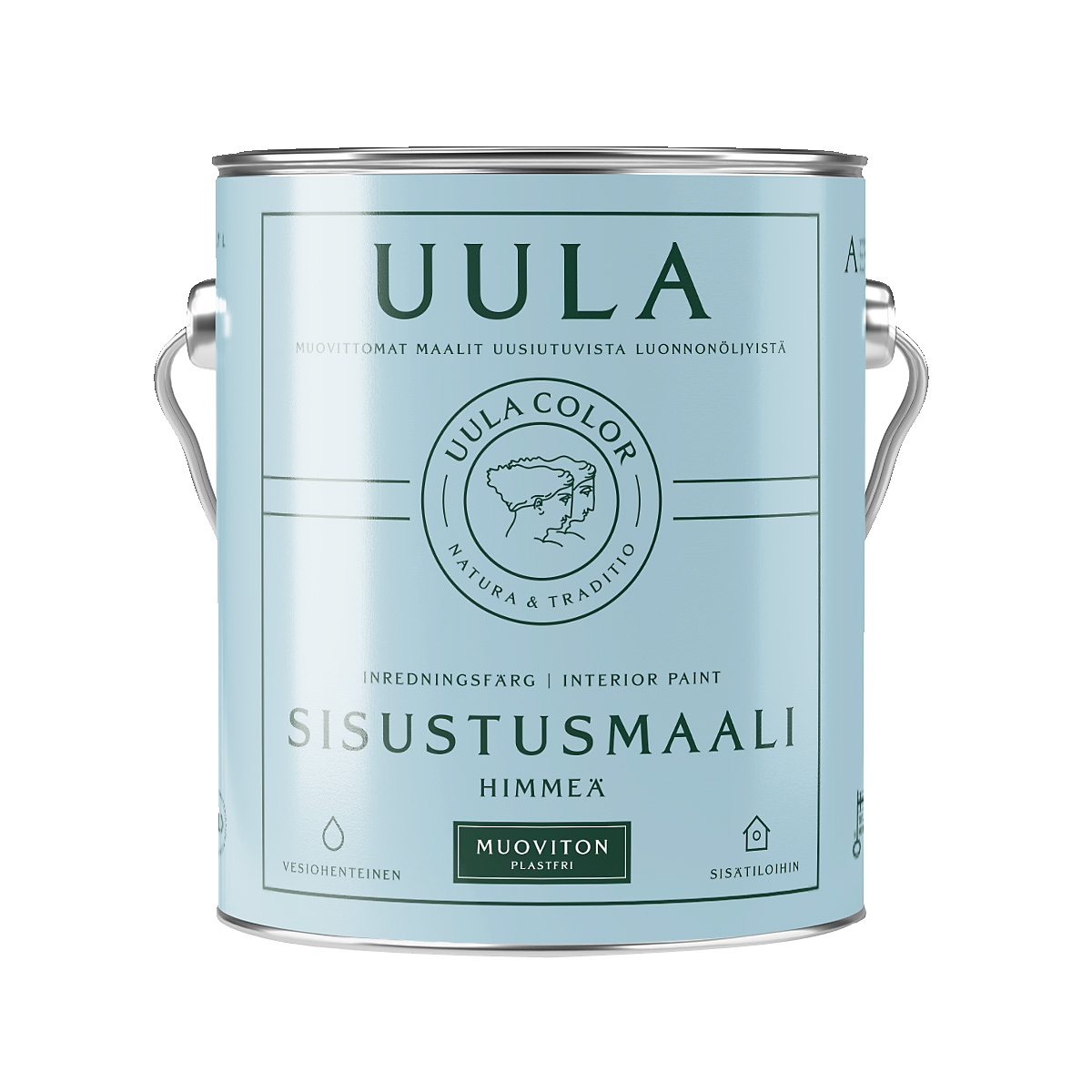 Tuote Himmeä Into -sisustusmaali on hajuton vesiohenteinen öljymaali sisäpintojen maalaamiseen. Maali ei sisällä muovisideaineita.