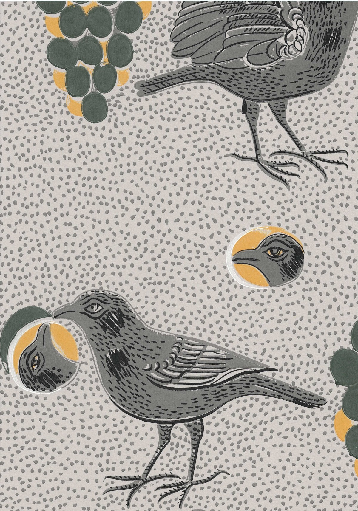 Klassinen suomalainen paperitapetti Ken kiuruista kaunein on Birger Kaipiaisen 1950-luvun kuosi.