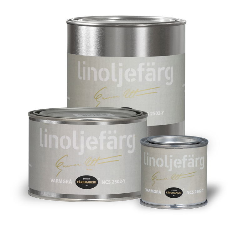 Kaikista tummemmista pellavaöljymaaleista saa titaani-sinkkivalkoisen avulla vähintään kolme erilaista sävyä. Ottossonin sävy: Varmgrå